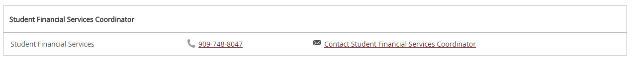 This section includes contact information for your Student Financial Services Coordinator. Please do not hesitate to reach out with any questions regarding your awards or the financial aid process.