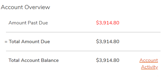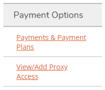 Go to the "Payments and Payment Plans" page in the navigation menu to make a payment on your account or to set up or view existing payment plans.