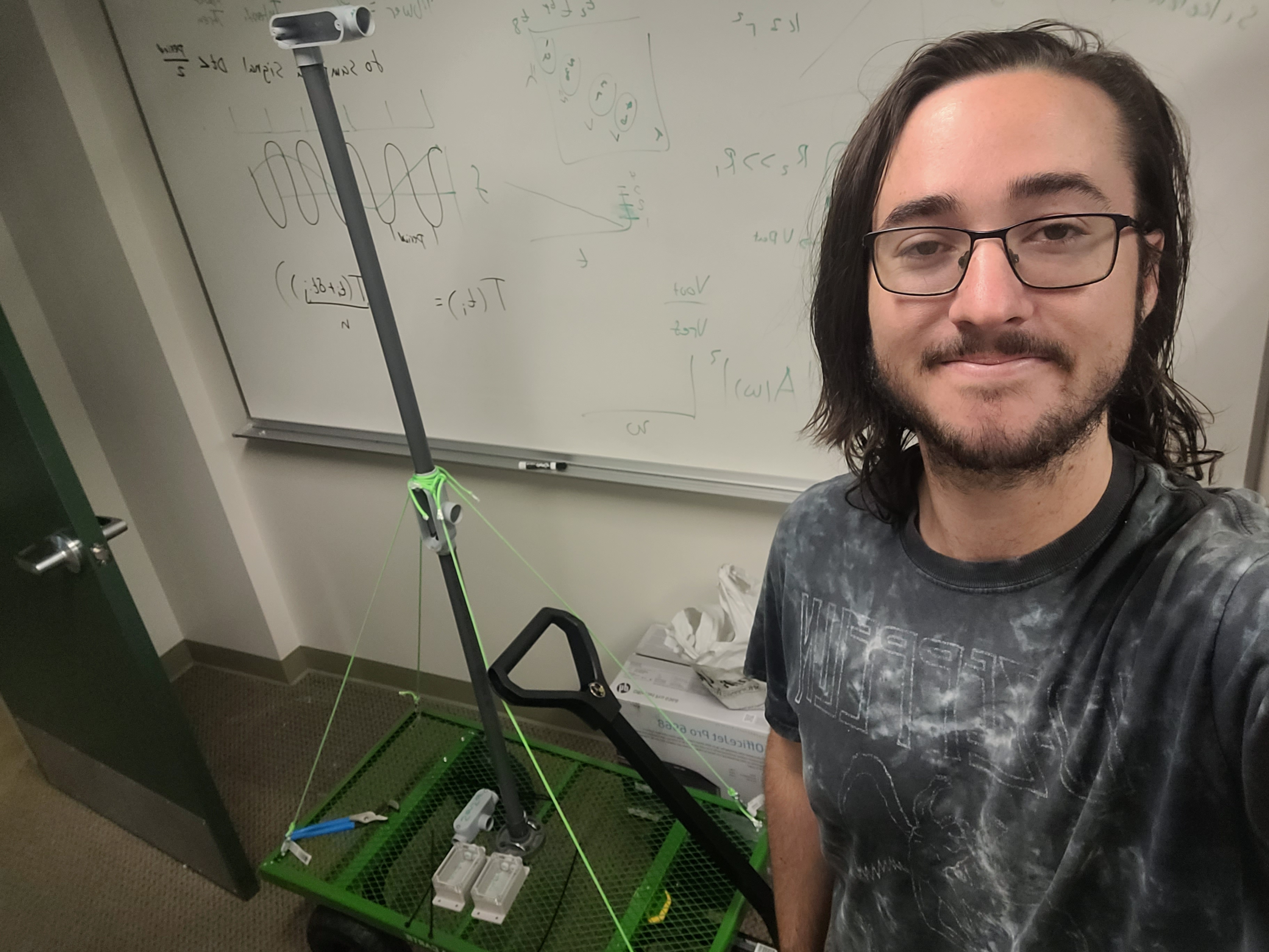 KM: A day for me usually involves working on code or circuitry in Appleton. When I'm working with the data I collect with the stationary sensors, I'm taking the data I collected and turning it into a graph with Python. Then, I do an analysis on it, as well as inevitably having to fix my code. When I'm working on the cart, I'm using the Arduino interface to program the various sensors I have, as well as messing with the circuitry I need to connect them to the microcontroller I use. Once a day, I also must check on the sensors that are out on campus to make sure they haven't been stolen and/or collect data from them.